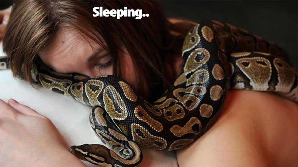 Sürüngenlere hiç ilgi duymadım ve birisiyle uyumayı hayal bile edemiyorum. Ancak bu kadın, pitonunun vücudu üzerinde yayılmasına izin veriyor. Bazen piton onu sarıyor.