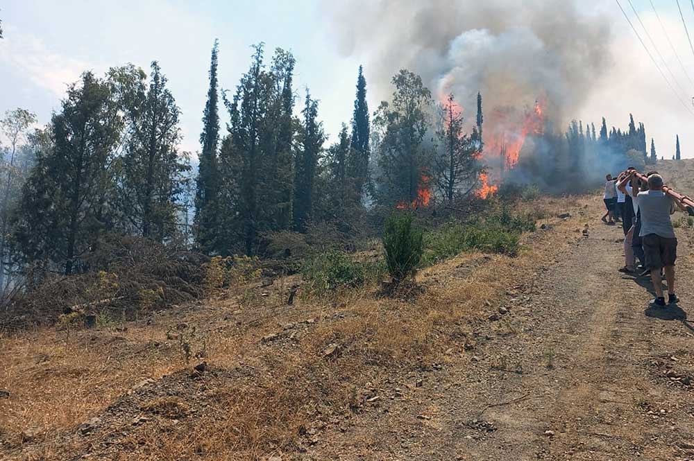 İzmir, Karşıyaka Yamanlar’da bir yangın haberi aldık. Biz dün gece sabaha kadar bununla ilgili müdahaleleri yapıp artık tamamladık derken bugün saat 10.14’te tamamladık dediğimiz yangına yakın bir yerde bir yangın daha çıktı. Her iki yangın da ormanlık alanda başladı.