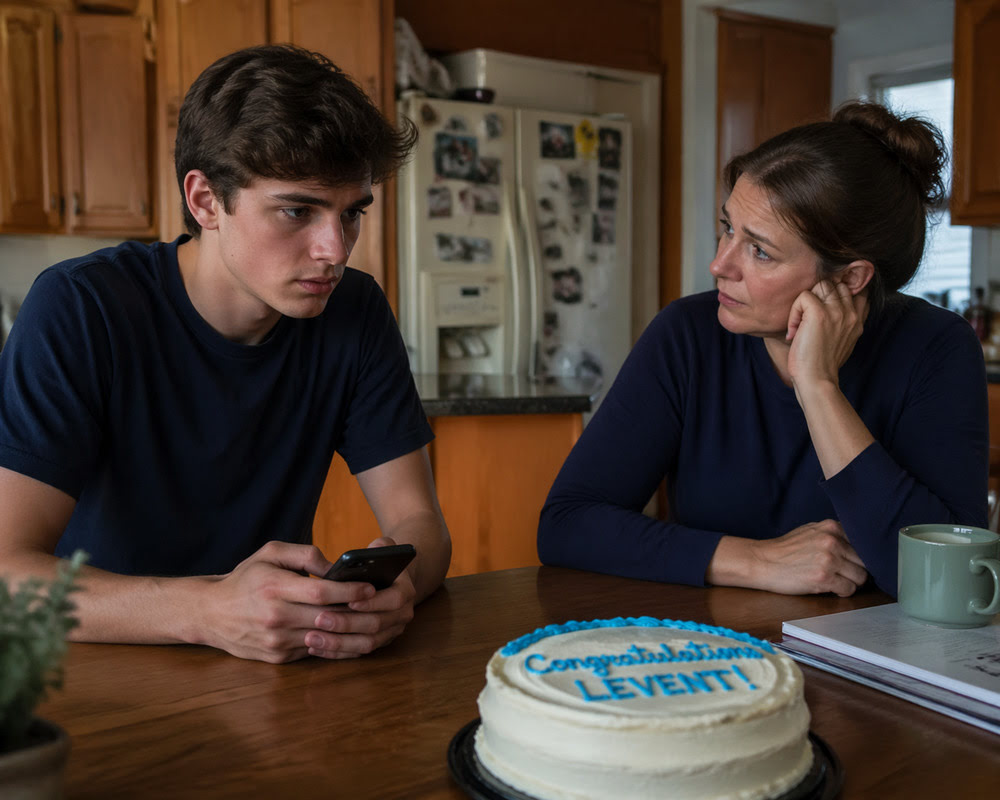 Oğlumun mezuniyet pastasının üzerine “TEBRİKLER, LEVENT!” yazarken, oğlum mutfağa girip, sanki hayalet görmüş gibi donakaldı.